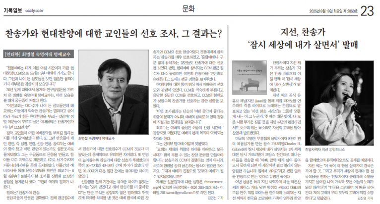 뮤직타임 [기사] 지선, 찬송가 ‘잠시 세상에 내가 살면서’ 발매(기독일보)