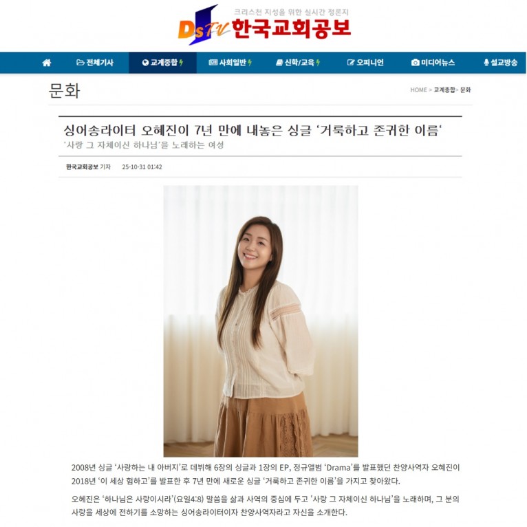 2008년 싱글 ‘사랑하는 내 아버지’로 데뷔해 6장의 싱글과 1장의 EP, 정규앨범 ‘Drama’를 발표했던 찬양사역자 오혜진이 2018년 ‘이 세상 험하고’를 발표한 후 7년 만에 새로운 싱글 ‘거룩하고 존귀한 이름’을 가지고 찾아왔다.